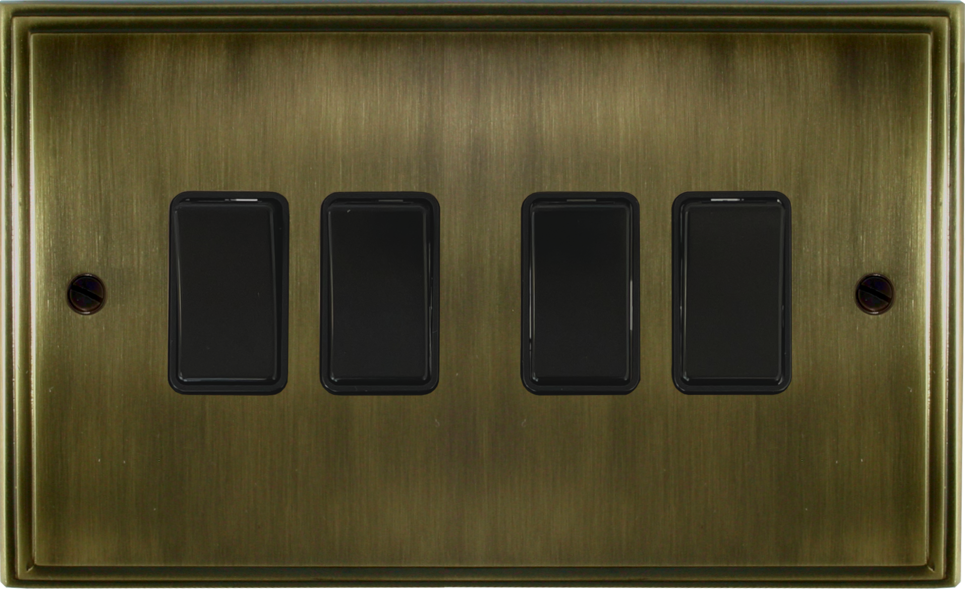 Cast Antique Brass Light Switch (4 Gang/Black Switches)