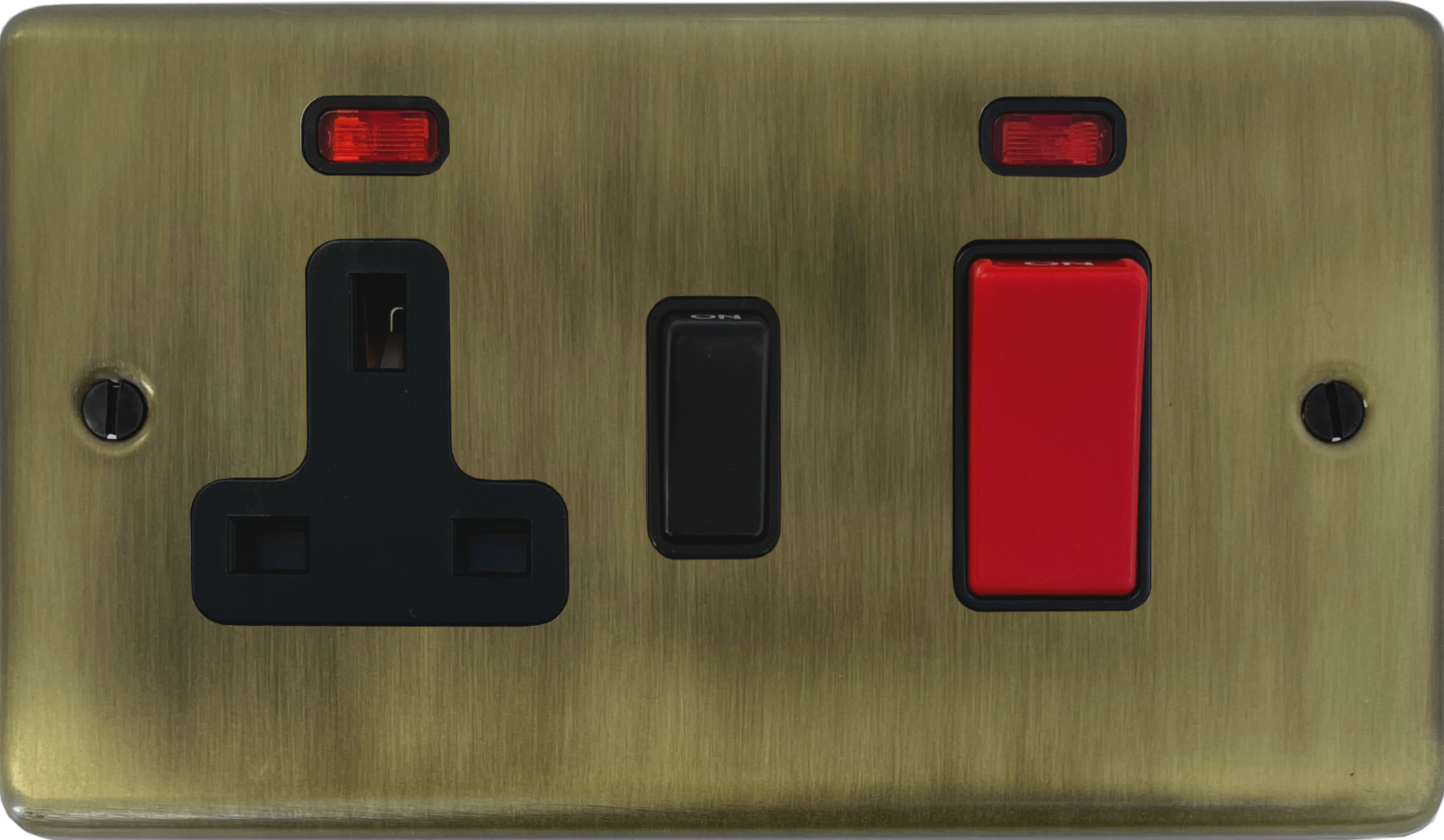Contour Light Antique Brass Cooker Switch with Socket (Black Switch)