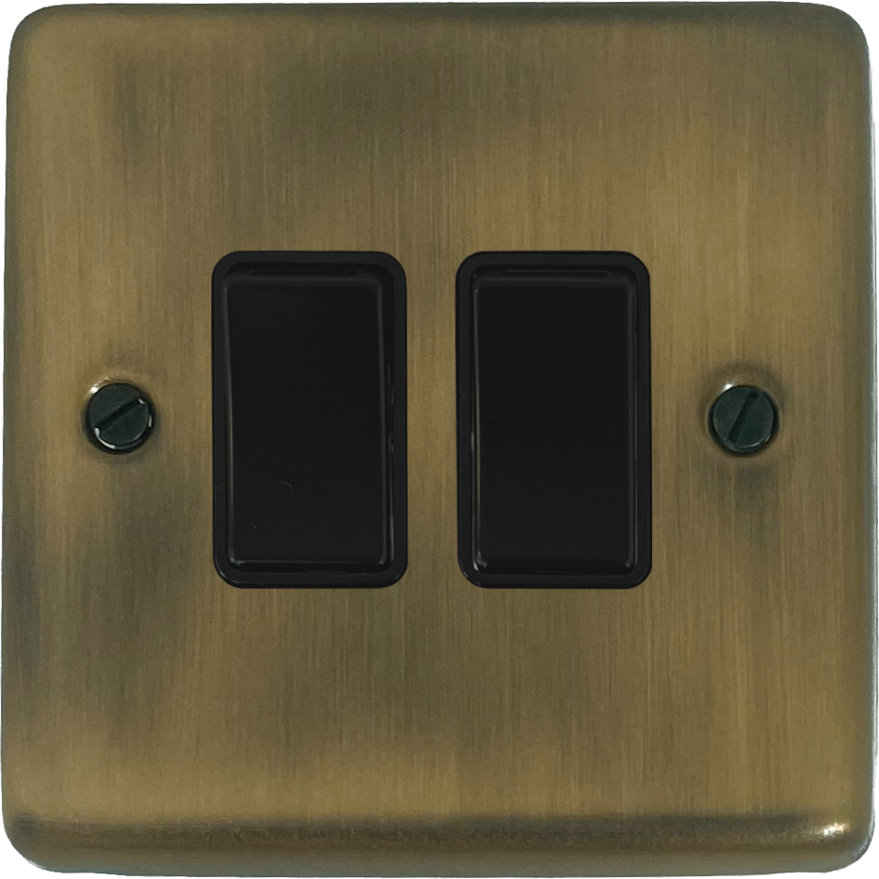 Contour Light Antique Brass Switch (2 Gang/Black Switches)