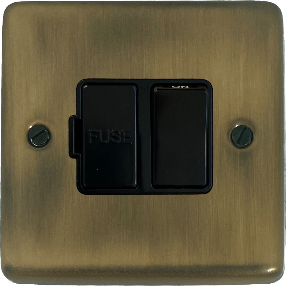 Contour Light Antique Brass Switched Fused Spur (Black Switch)