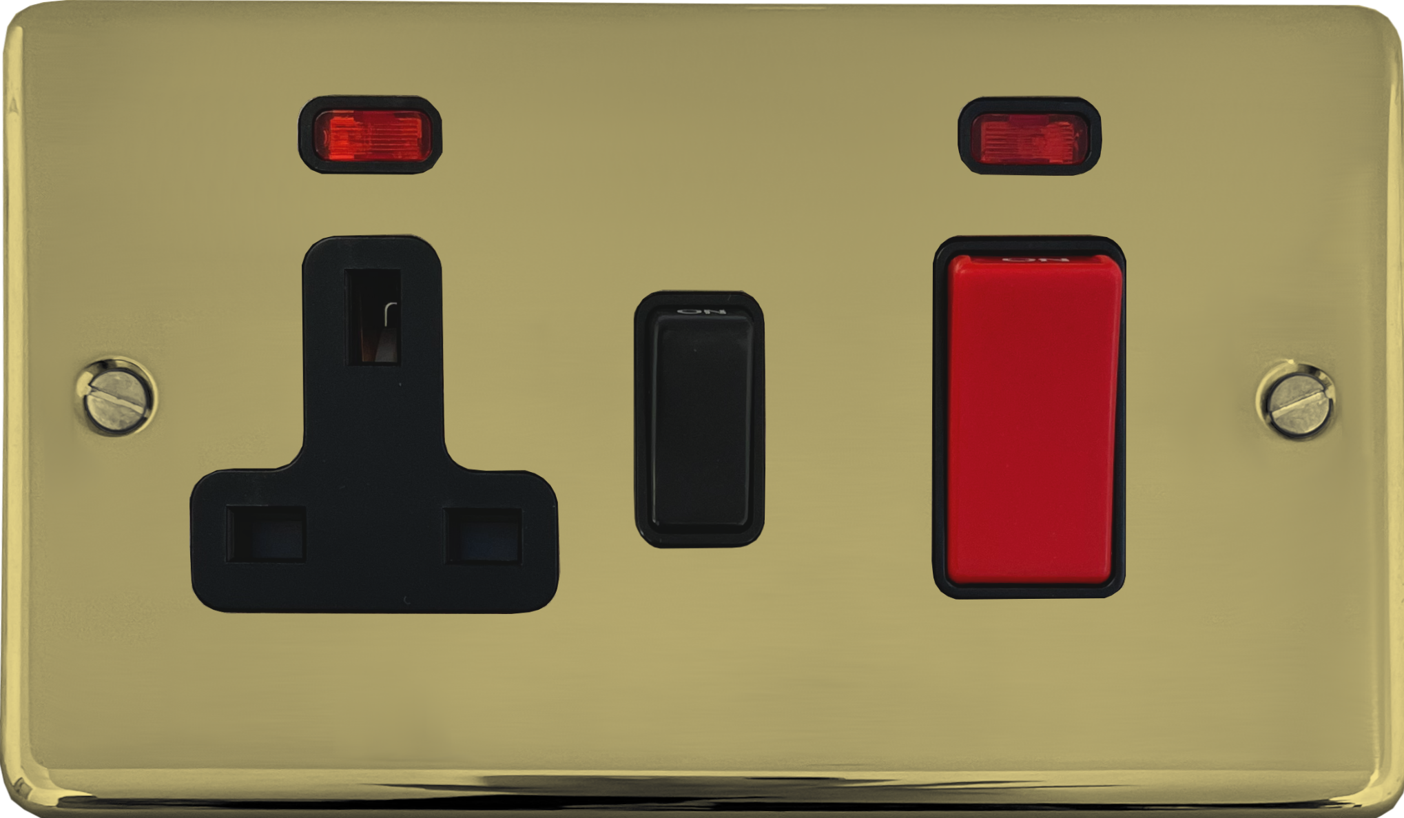 Contour Polished Brass Cooker Switch with Socket (Black Switch)