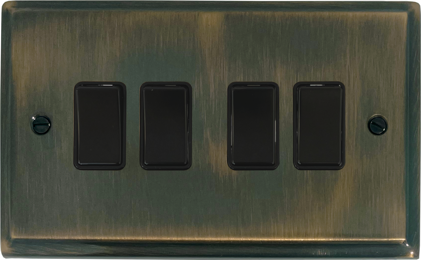 Deco Antique Brass Light Switch (4 Gang/Black Switches)