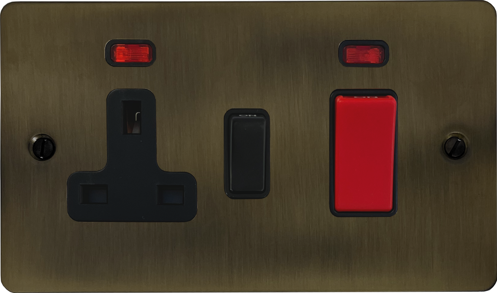Flat Antique Brass Cooker Switch with Socket (Black Switch)