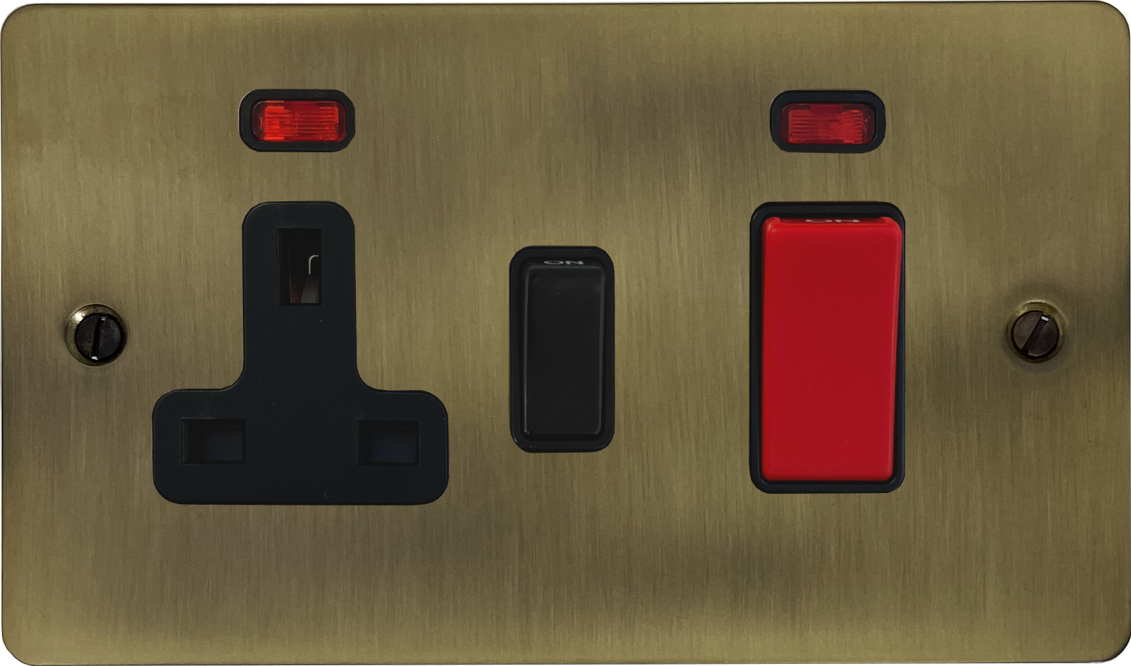 Flat Light Antique Brass Cooker Switch with Socket (Black Switch)