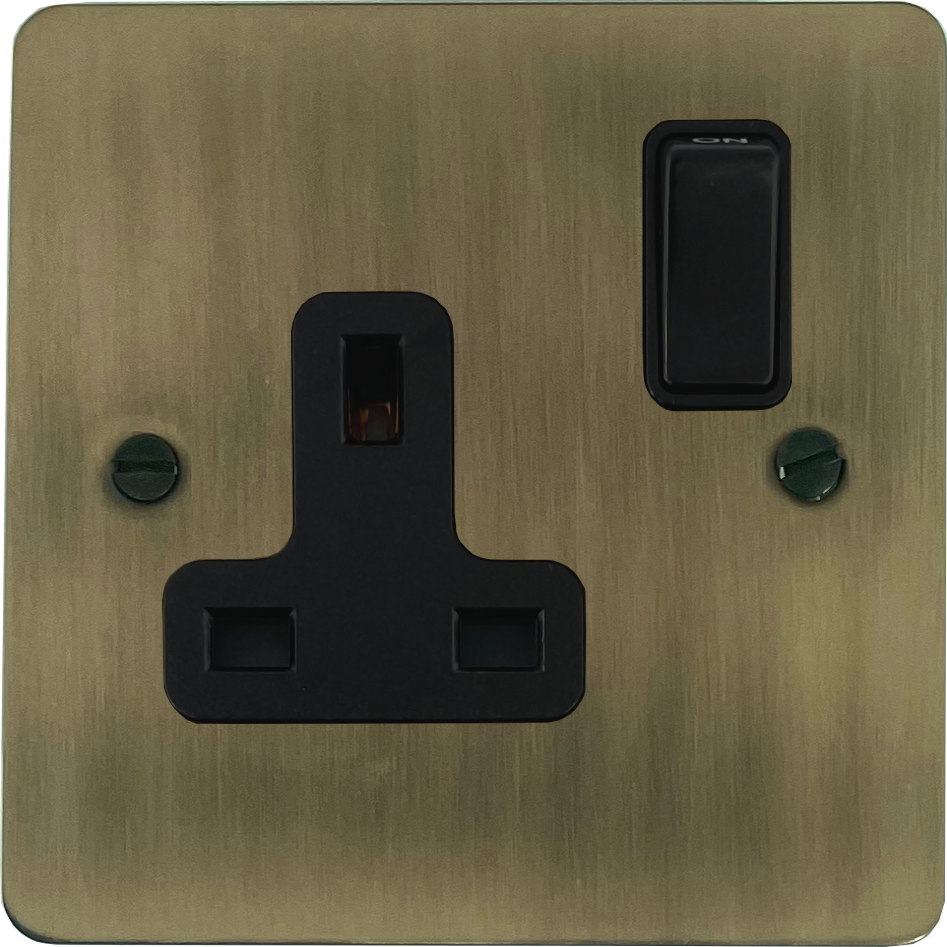 Flat Light Antique Brass Socket (1 Gang/Black Switch)