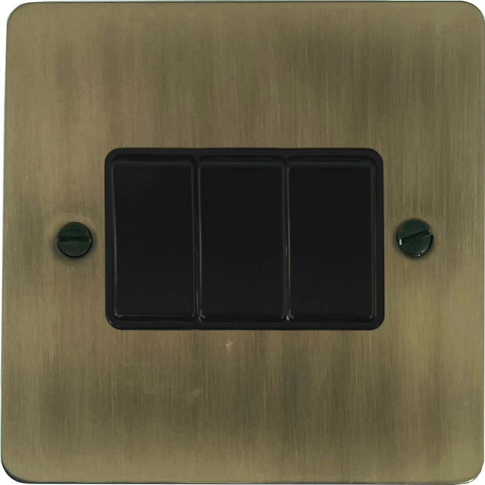 Flat Light Antique Brass Switch (3 Gang/Black Switches)