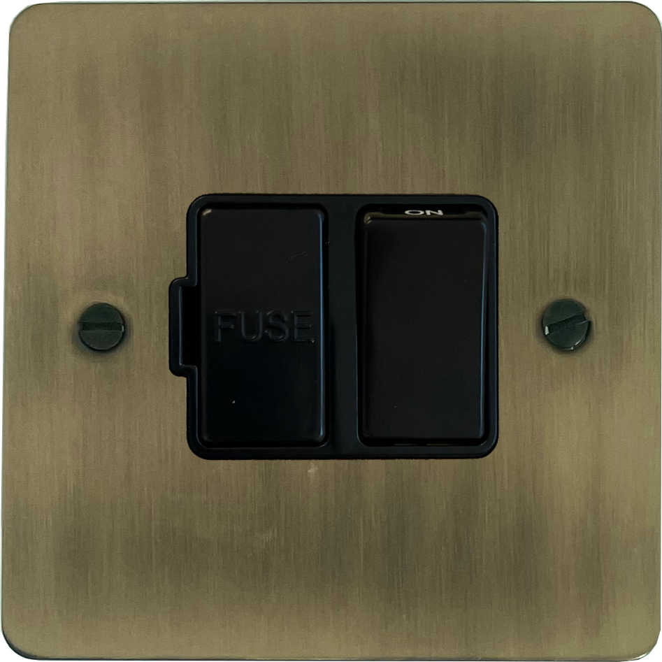 Flat Light Antique Brass Switched Fused Spur (Black Switch)