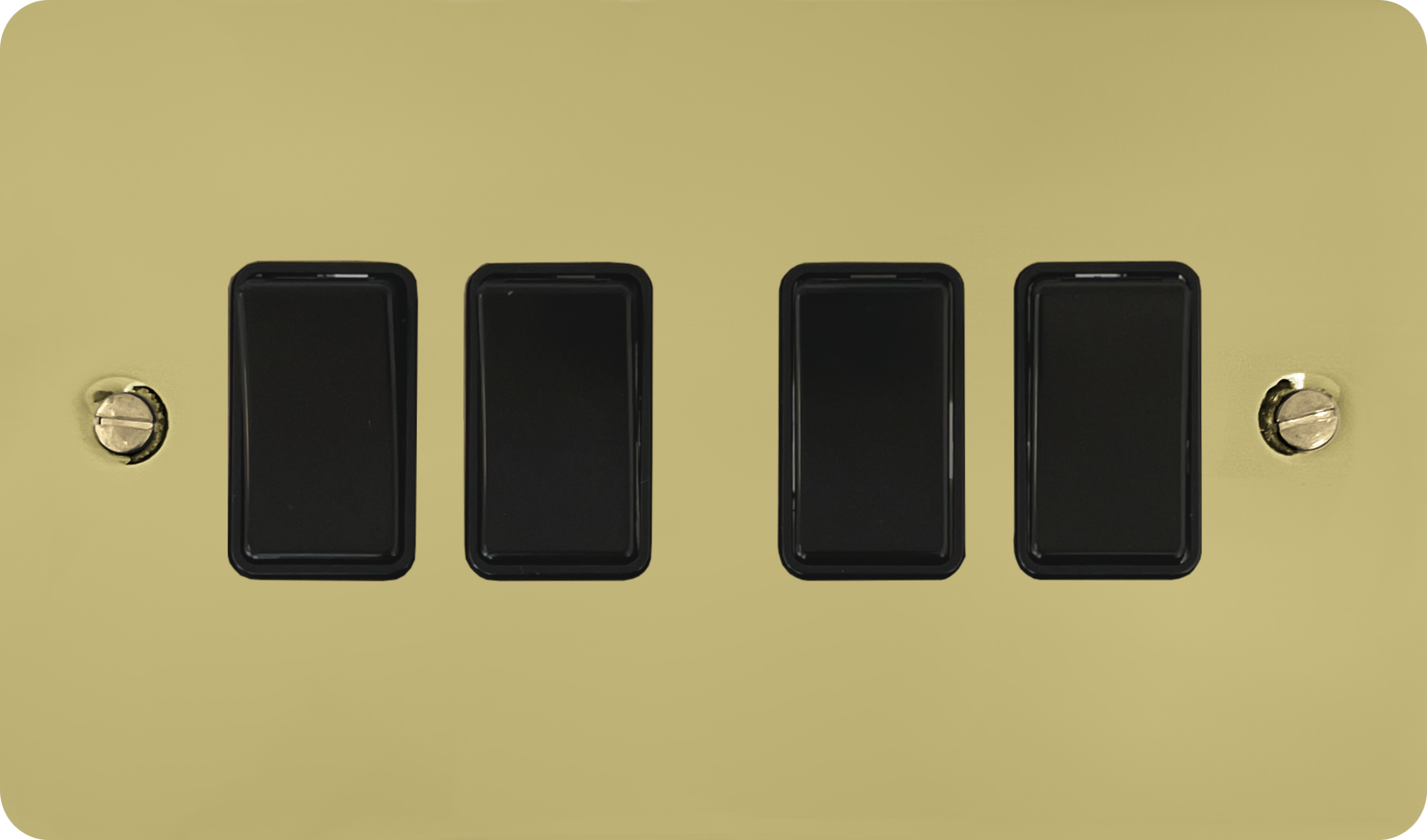 Flat Polished Brass Light Switch (4 Gang/Black Switches)