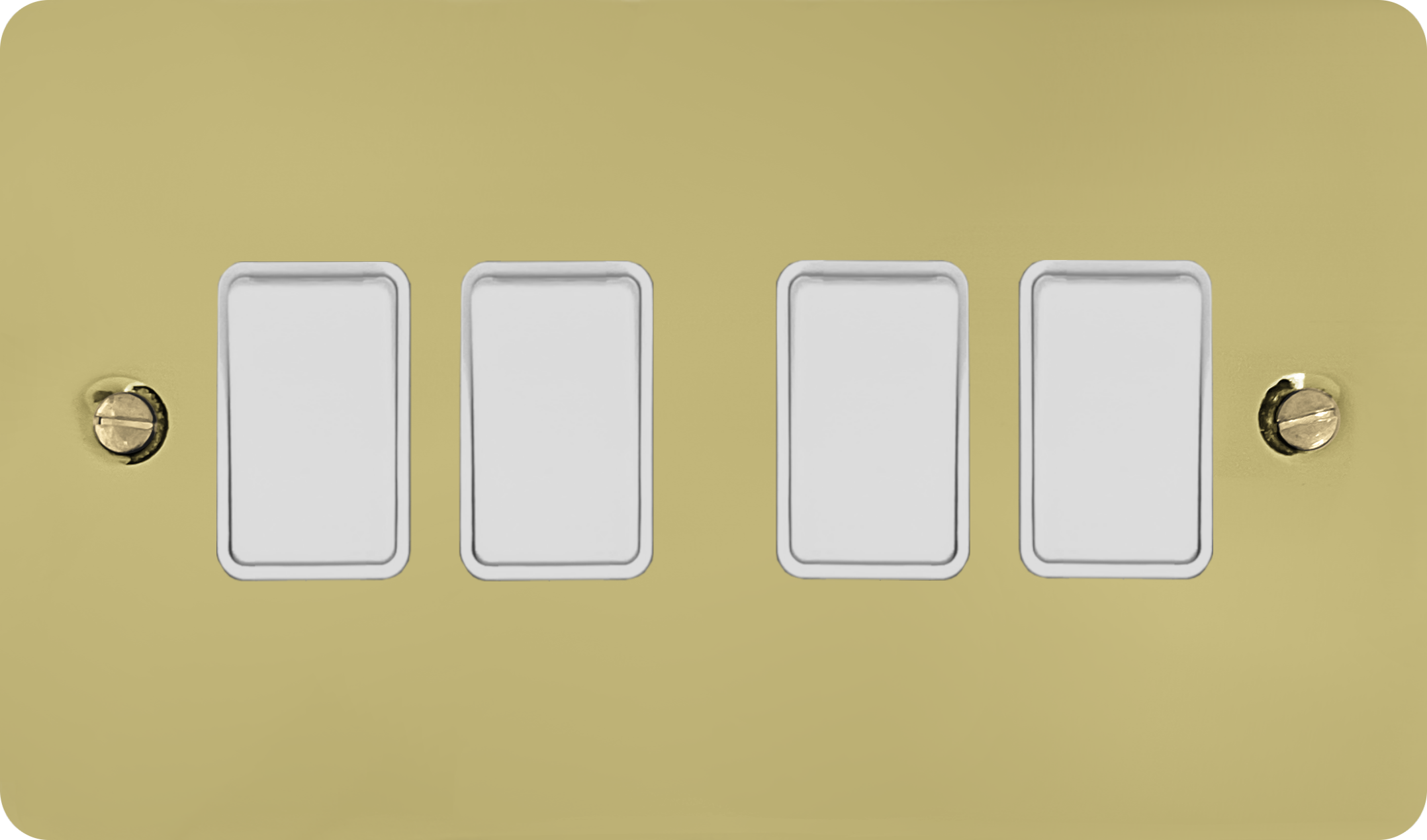 Flat Polished Brass Light Switch (4 Gang/White Switches)