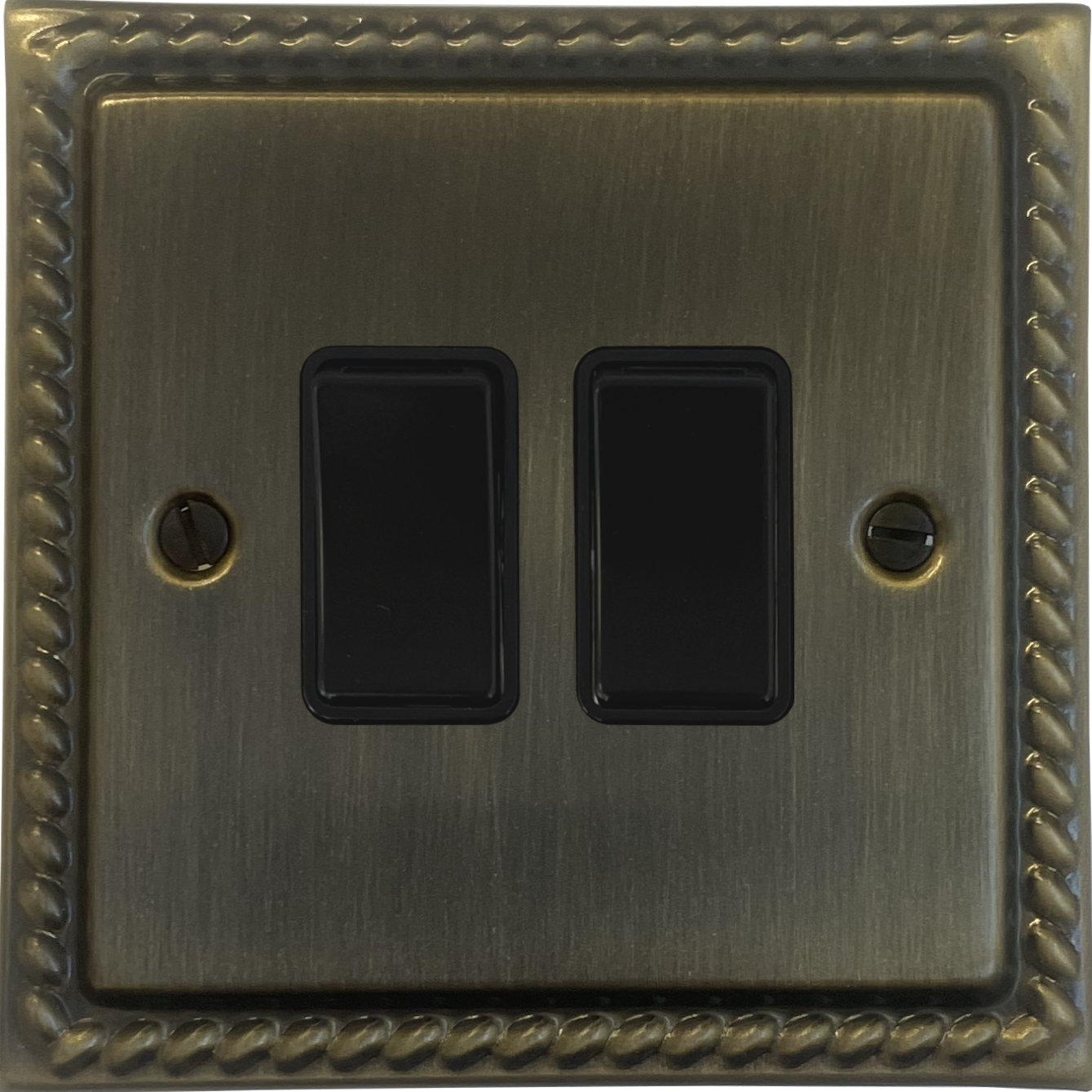 Georgian Antique Brass Light Switch (2 Gang/Black Switches)
