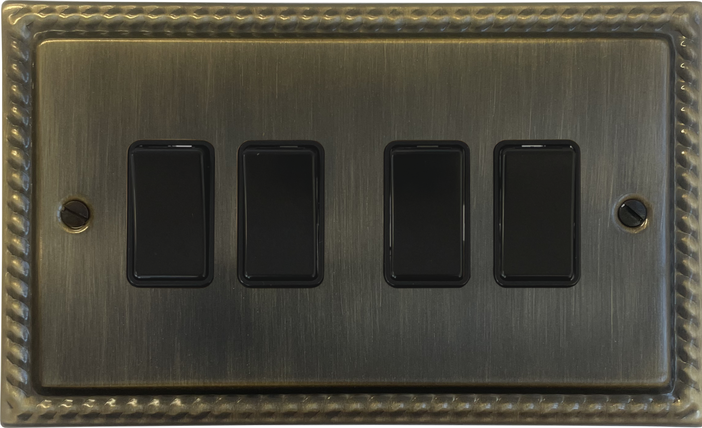 Georgian Antique Brass Light Switch (4 Gang/Black Switches)