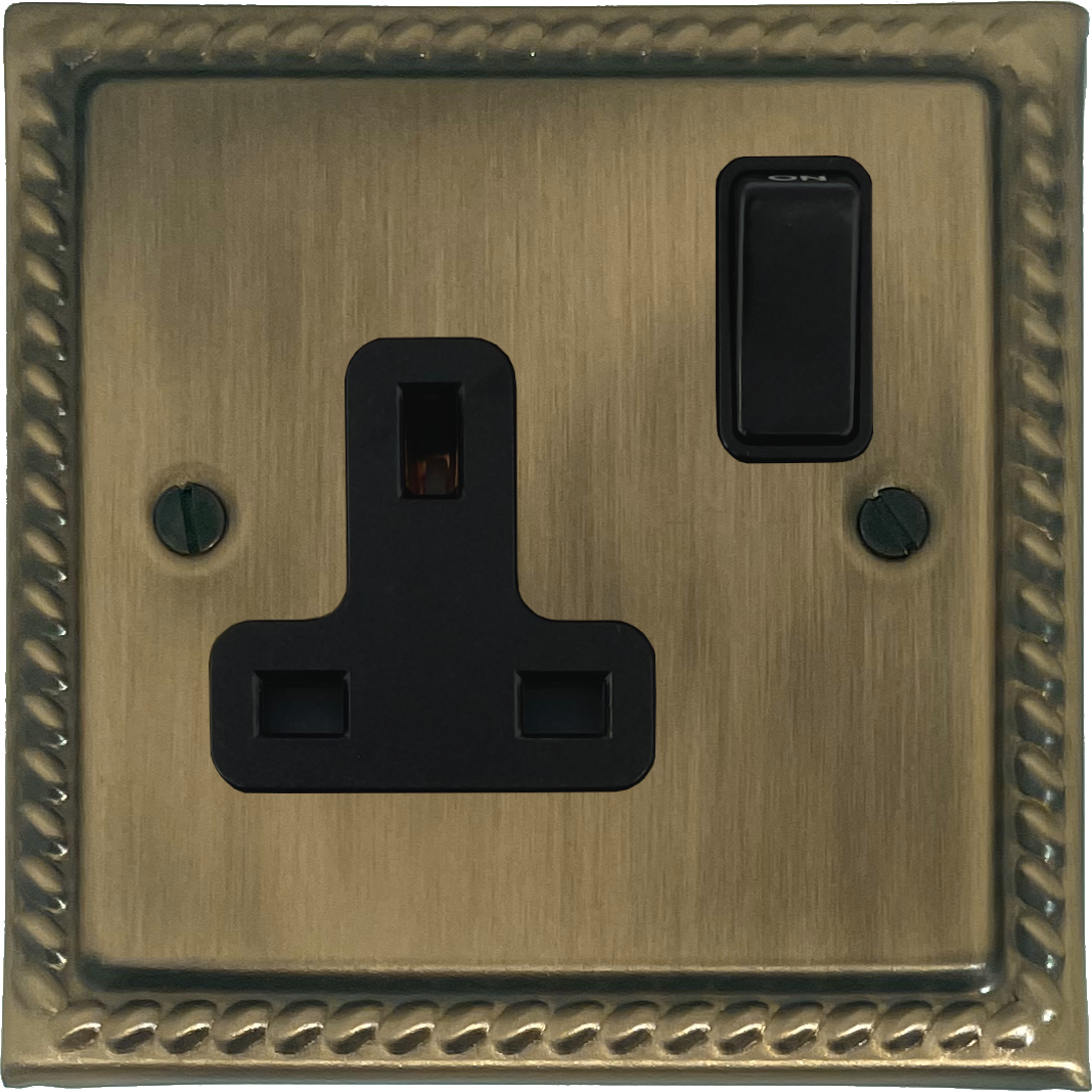 Georgian Light Antique Brass Socket (1 Gang/Black Switch)