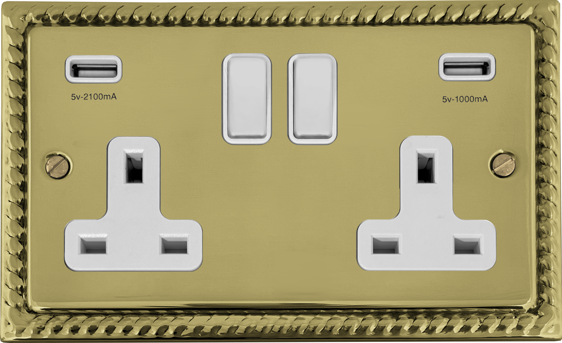 Georgian Polished Brass Double Socket with USB (White Switches)