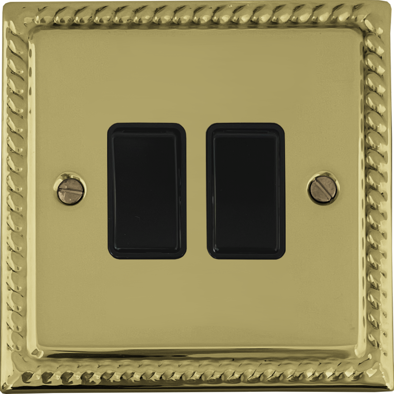 Georgian Polished Brass Light Switch (2 Gang/Black Switches)