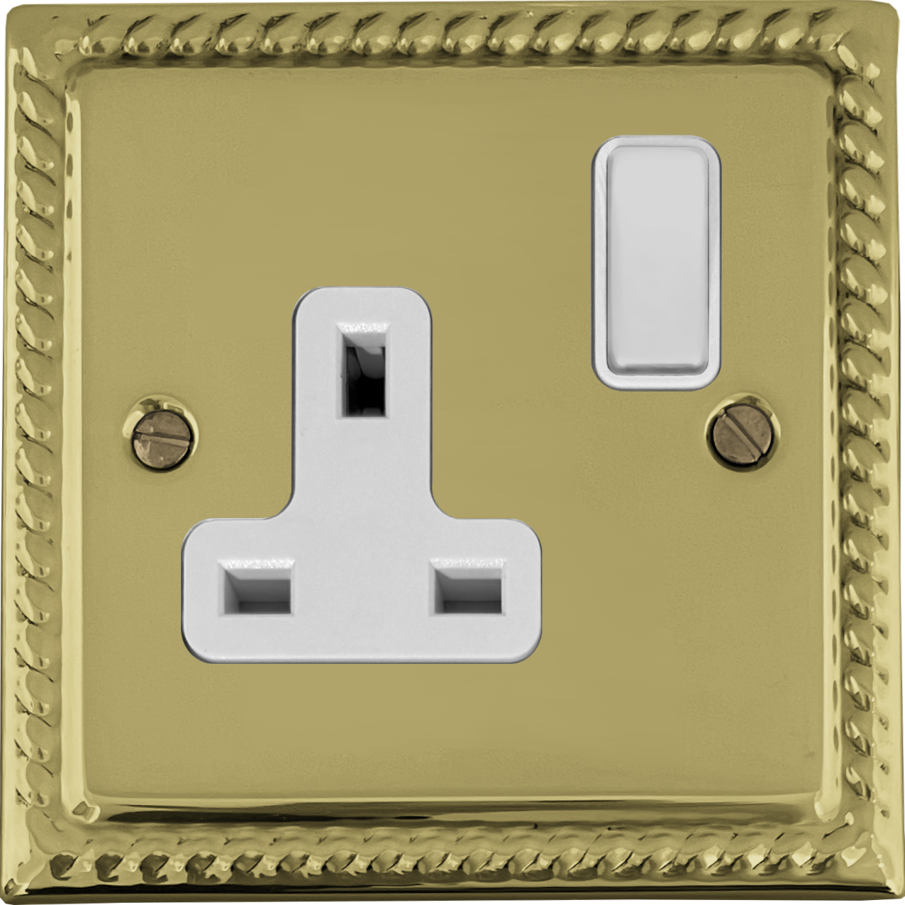Georgian Polished Brass Single Socket (White Switch)