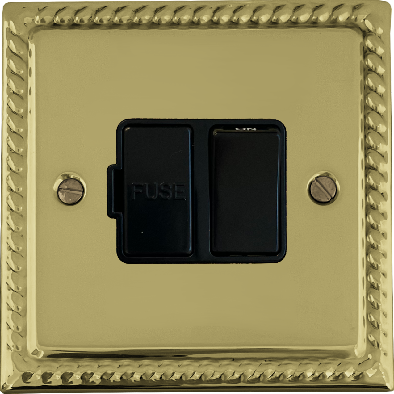 Georgian Polished Brass Switched Fused Spur (Black Switch)
