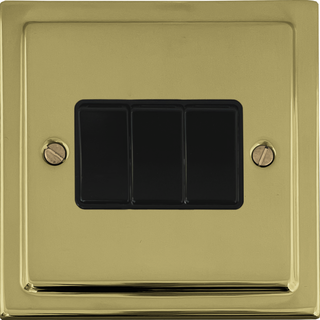 Polished Brass Light Switch (3 Gang/Black Switches)