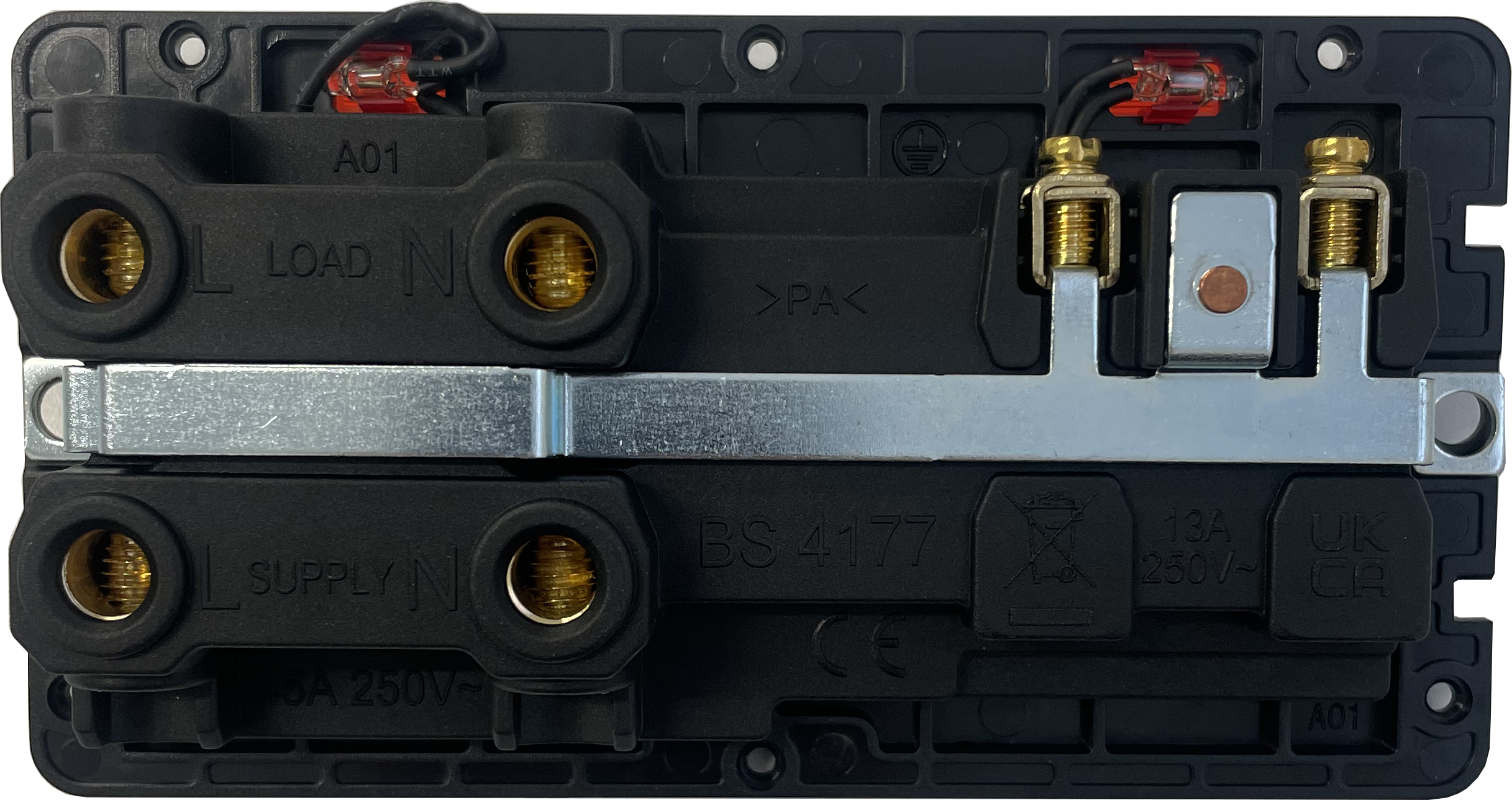 Polished Brass Unlaquered Cooker Switch with Socket (Black Switch) VI.29B.BUL