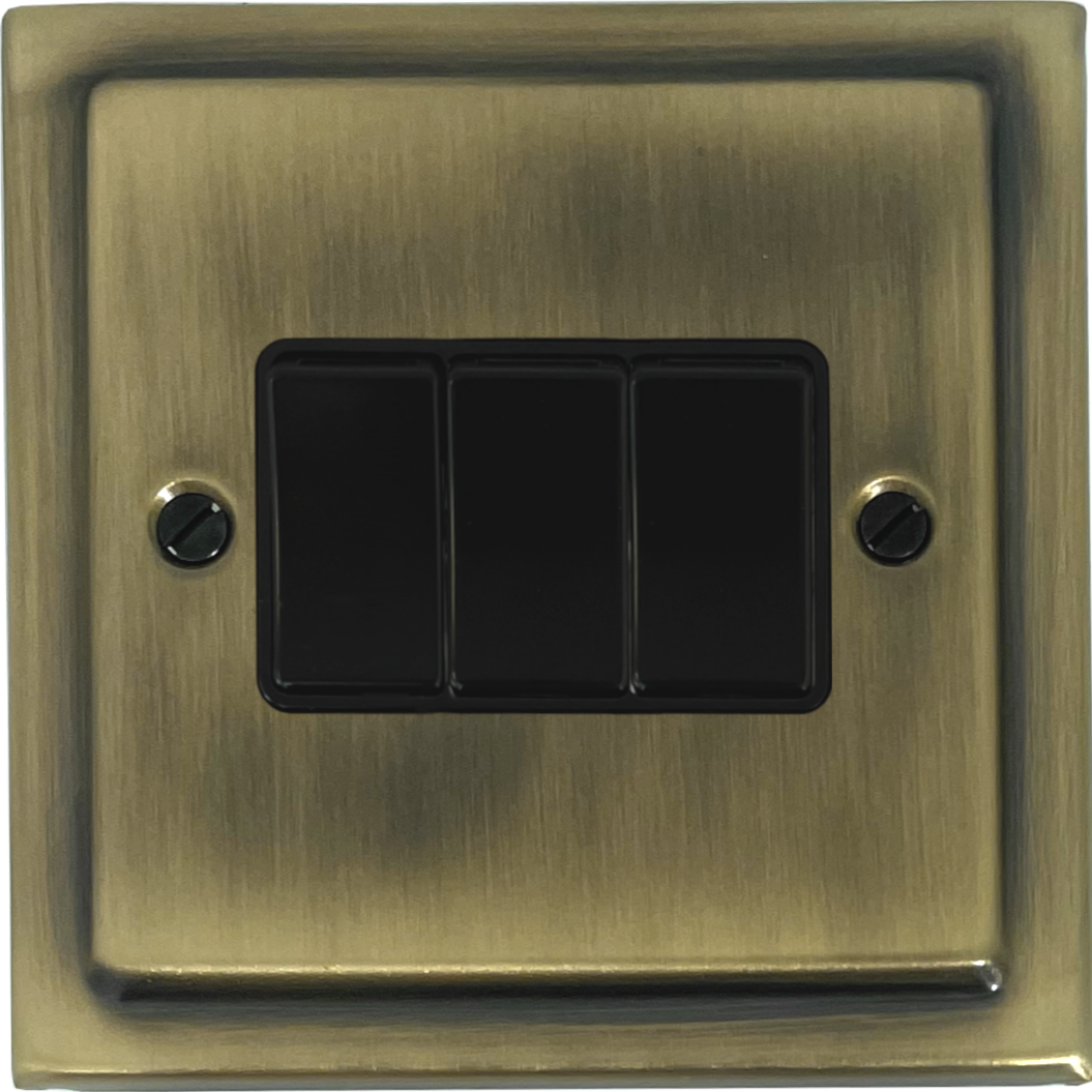 Victorian Light Antique Brass Switch (3 Gang/Black Switches)